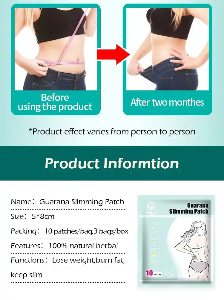 ملكنا رقعة غوارانا للتخسيس يستغل قوة مستخلص الغوارانا ، المعروف بمحتواه الطبيعي من الكافيين، للمساعدة في تعزيز عملية الأيض وحرق الدهون. مصمم لـ ارتداء سهل وخفي تُقدم هذه الرقعة المكونات الفعالة تدريجيًا، مما يدعم مستويات الطاقة والتحكم في الوزن طوال اليوم. مصنوعة من مادة قابلة للتنفس وصديقة للبشرة إنه مثالي للاستخدام اليومي دون الشعور بأي إزعاج.